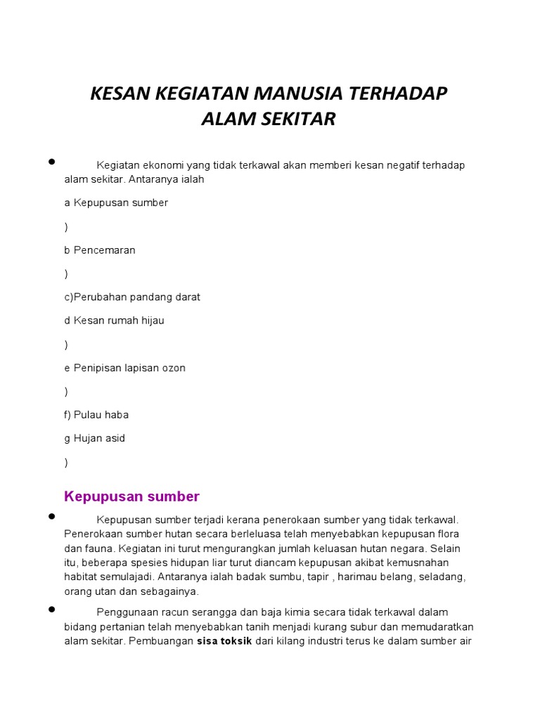 Related : Kesan Kegiatan Ekonomi Terhadap Alam Sekitar - Jelaskan dengan contoh 5 kesan negatif kegiatan ekonomi terhadap alam sekitar..