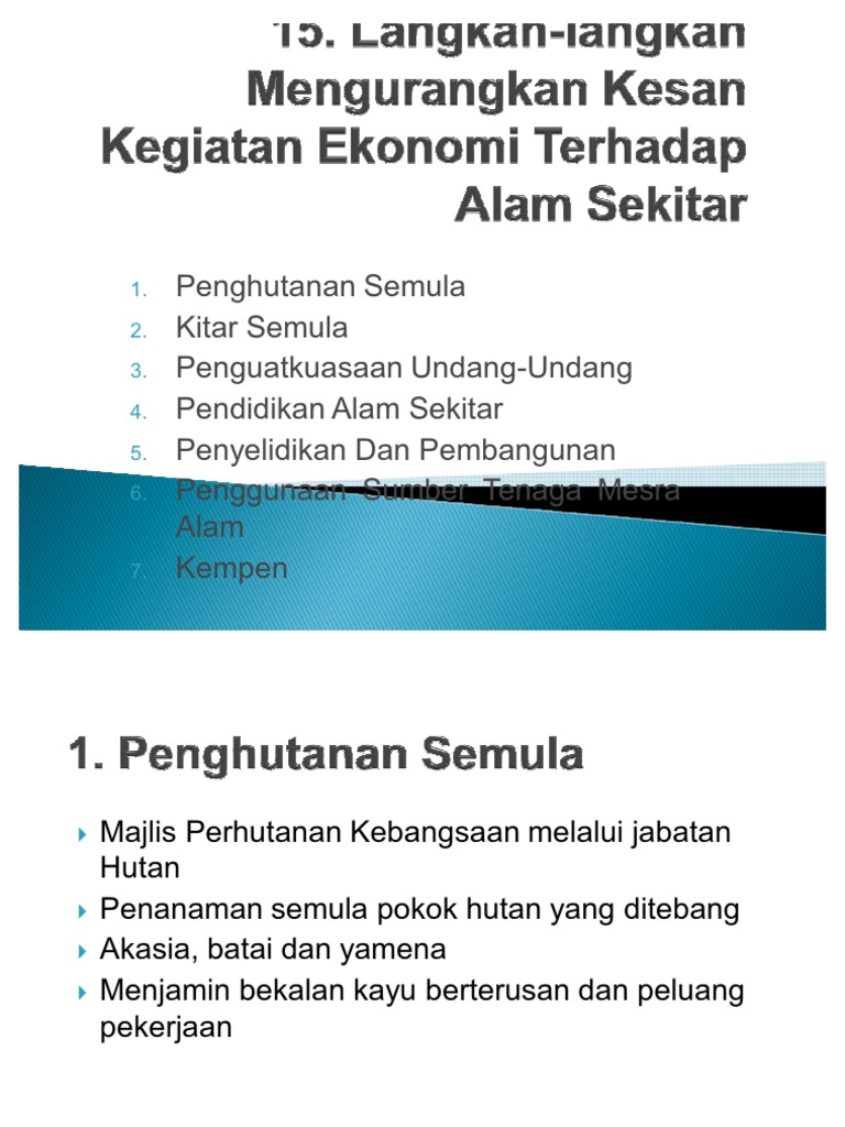 Langkah Langkah Mengurangkan Kesan Kegiatan Ekonomi Terhadap By Nazira Fazil from 0701.static.prezi.com Kegiatan ekonomi dapat diartikan sebagai upaya hal ini kita lakukan karena tidak semua kebutuhan dapat langsung kita peroleh dari lingkungan sekitar. Kegiatan ekonomi yang tidaj diuruskan dengan baik boleh menyebabkan perubahan landskap , pencemaran dan kepupusan. The case study focused on a. Kesan kegiatan ekonomi terhadap alam sekitar. Terkadang, kita harus melakukan beberapa. 1) penebangan hutan untuk pembalakan, pertanian dan petempatan akan menyebabkan flora. Segala kegiatan manusia yang membawa kesan buruk terhadap alam sekitar perlu diberi perhatian oleh kerajaan. Cadangkan 5 langkah yang anda fikir dapat mengurangkan kesan negatif kegiatan ekonomi terhadap alam sekitar negara malaysia.