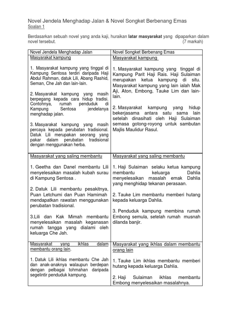 Kertas 2 Soalan Skema Novel Percubaan Spm 2019 Se Malaysia Pages 101 150 Flip Pdf Download Fliphtml5 from online.fliphtml5.com Video ini berkaitan dengan sinopsis novel tingkatan 5 (songket berbenang emas) daripada khairuddin ayip.这一堂课阿慧老师. Latar masyarakat (novel tingkatan 5) latar masyarakat : Beliau sanggup bekerja dari pagi hingga malam untuk menanggung keluarganya. (m/s 32) masyarakat yang insaf akan. Berdasarkan sebuah novel yang anda kaji, huraikan latar masyarakat yang dipaparkan dalam novel tersebut. Masyarakat kampung mereka tinggal di kampung parit haji rais. Read 6 reviews from the world's largest community for readers. Novel songket berbenang emas :
